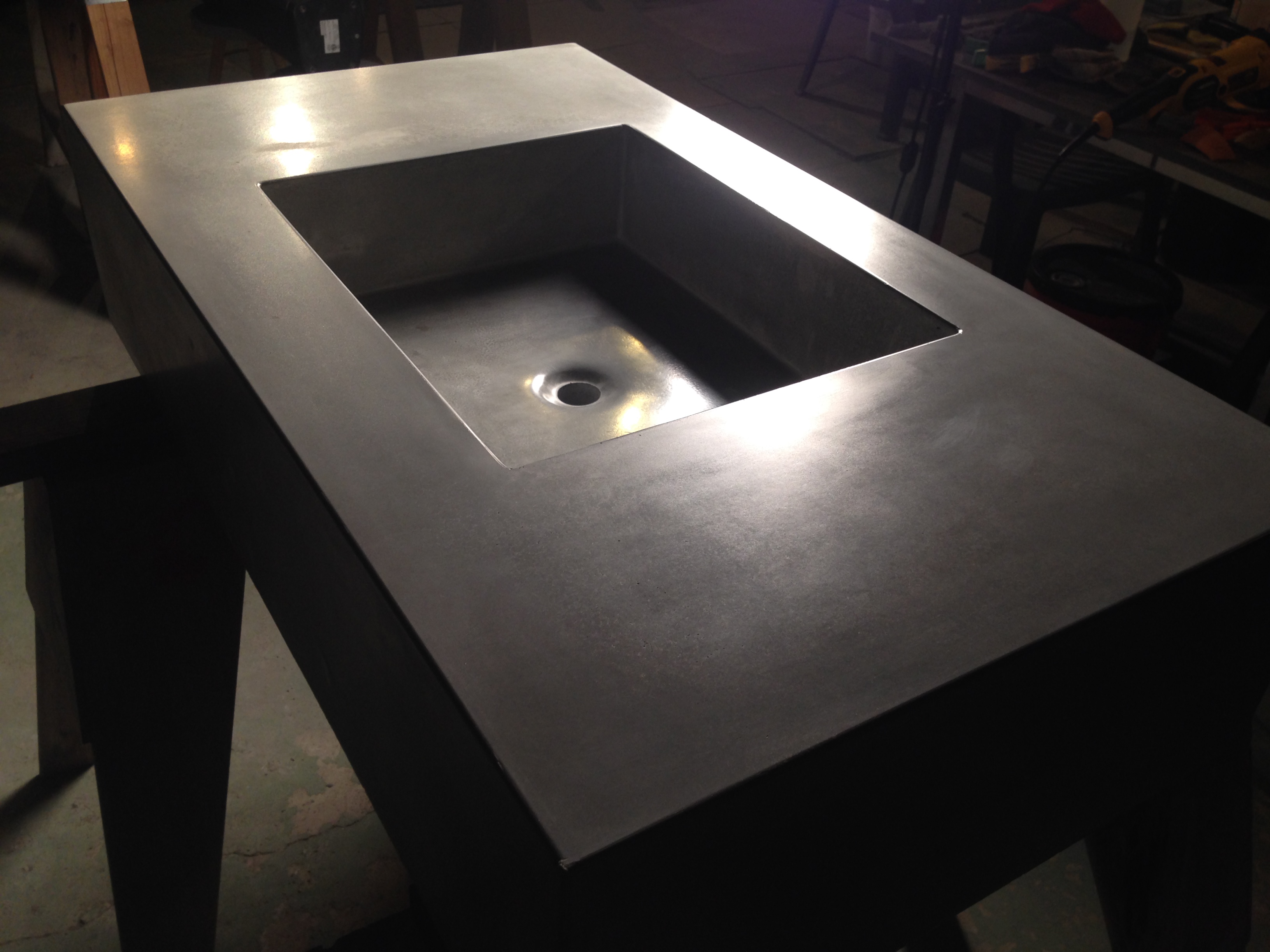 The process would be a negative mold of actual sink and the concrete sprayed inside the mold. Then it takes a day to dry and cure. after curing process we grind the edges then take it out of mold. then we wash it with light sanding where it need sand. then it has to dry for couple of days so the water content of concrete is about 0.2 %. then we start the sealing process which concrete has to heat up to 120 degree fahrenheit  open its pores and absorb the sealing material. sealer is penetrating sealer and it takes up to 10 coats to perfectly seal the concrete. every coat we burnish the concrete with hog’s hair pad and polish machine to get a shinny and clean surface.